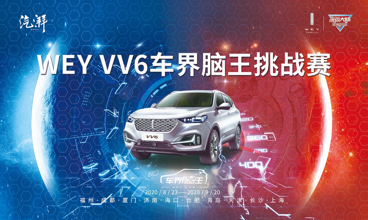 VV6“车界脑王”十城挑战即将开启 脑王擂主等你来战!8月23日-9月13日,每逢周末WEY品牌将联合汽车媒体汽湃在福州...……