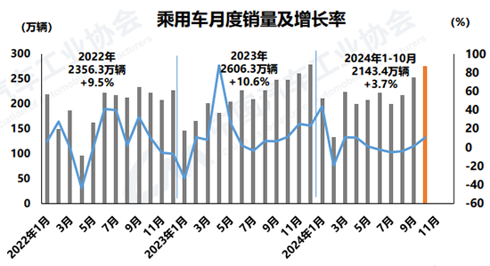 作为汽车市场的绝对主力,乘用车市场10月迎来大爆发,产销分别完成270.6万辆和275.5万辆,环比分别增长8.2%和9.1%,同比分别增长7.7%和10.7%;1-10月累计产销分别为2134.9万辆和2143.4万辆,同比分别增长3%和3.7%。