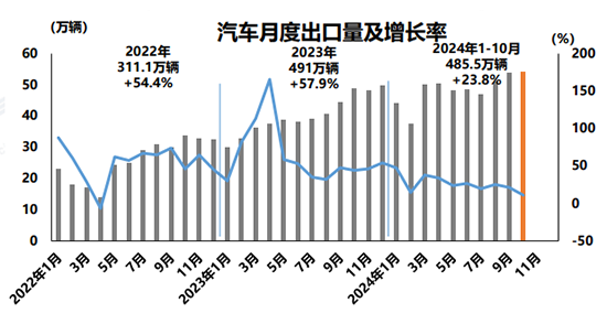 陈士华分析认为,我国前10个月汽车出口达485.5万辆,同比增长20%以上,当月出口量超过50万辆。如果后两个月能保持50万辆的水平,全年出口将达到580万辆;如果继续保持现有增速,有望达到600万辆。