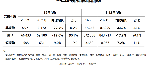 2022年进口乘用车销售76.8万辆 豪华品牌占比超九成