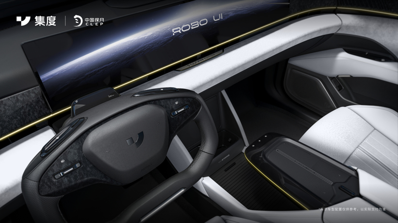 ROBO-01探月限定版是集度与中国探月合作推出的探月工程联名车型,代表集度以航天级严苛标准构筑汽车机器人的产品品质和卓越的智能化体验。ROBO-01探月限定版拥有专属身份标签,整车内外饰具有丰富的浅金色专属饰件、探月LOGO等“中国探月”主题元素,增强了限定版车型的独特性和识别度。