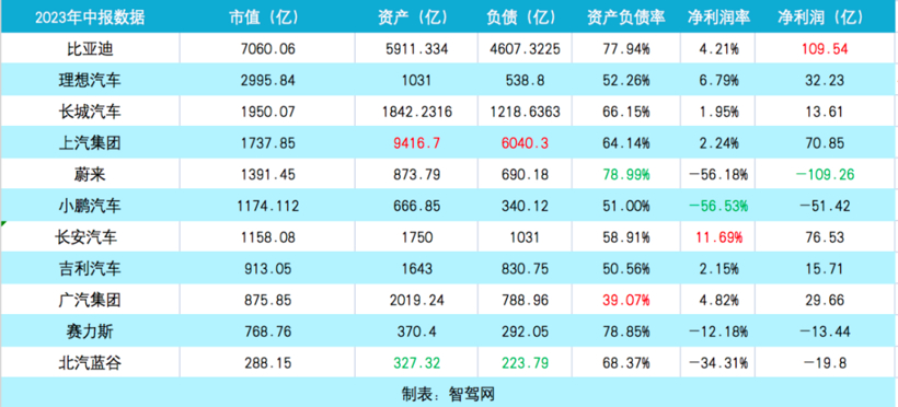 我们综合统计了多家本土汽车品牌和主流外资品牌的资产负债情况与盈利能力,数据体现的事实可能是反直觉的。