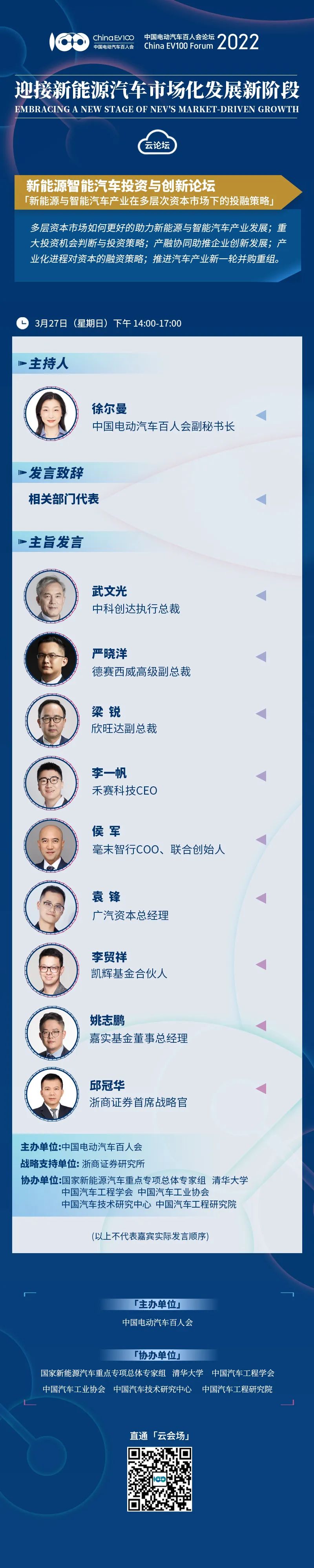 为回应和服务产业,3月27日,中国电动汽车百人会论坛(2022)的第三天将举办8场上述热点话题的专题论坛,并以上、下午各4场并行的方式进行。