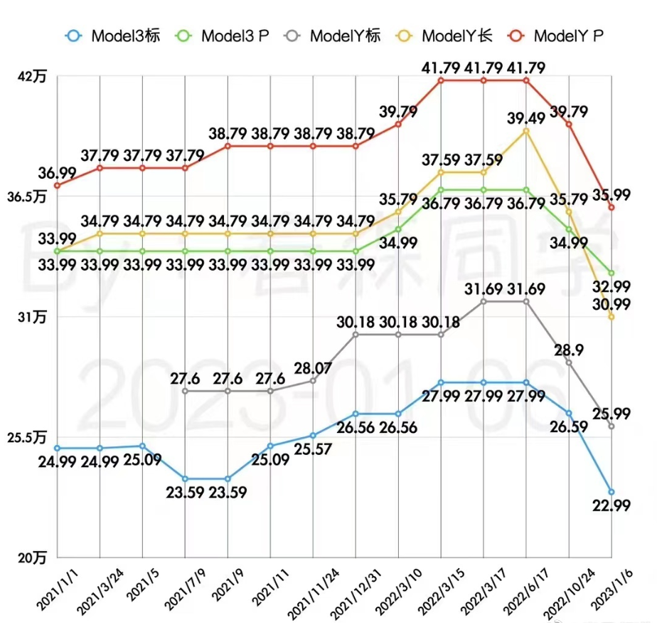 但由于去年年底消费前置、库存上升两大麻烦,以及上海超级工厂停摆危机,特斯拉1月率先发起“价格战”,Model 3和Model Y两款车型迎来史上最低价,降幅为2万-4.8万元,这也意味着,2023年新能源汽车淘汰赛将加剧,赢家通吃的头部效应将越发明显。