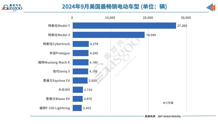 根据标普全球汽车的数据,9月,美国所有轻型车(不论燃油类型)的注册量同比增长0.7%,至130万辆。其中,纯电动汽车(不包括混合动力车)的注册量为110,339辆,而去年同期为108,889辆;纯电动汽车在美国整体轻型车市场的占有率与去年同期持平,为8.6%。