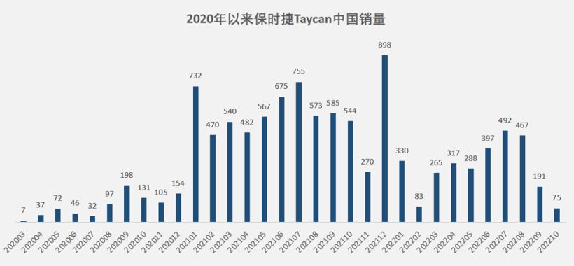 就在10月底,路特斯发布超跑SUV Eletre之后不到一星期,11月初,保时捷发布的数据显示,旗下首款电动化车型Taycan在11月份的销量仅有75辆,比去年同期544辆锐减逾80%,今年1~10月份,Taycan的销量从去年全年7091辆锐减到不足3000辆,2022年销量腰斩已经成为定局。