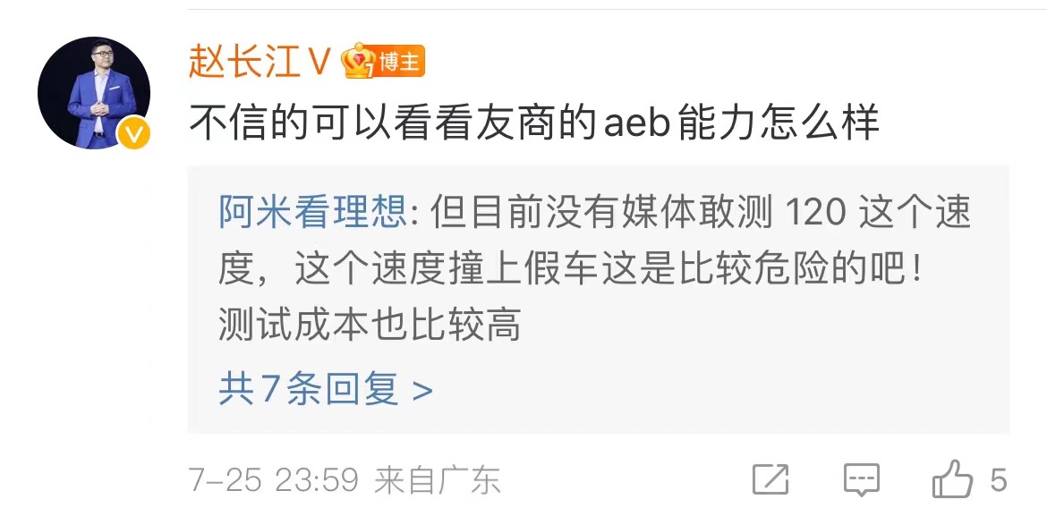 在评论区,赵长江率先给出了自己的回答,“不信的可以看看友商的AEB能力怎么样”。不是反问,却胜似反问。