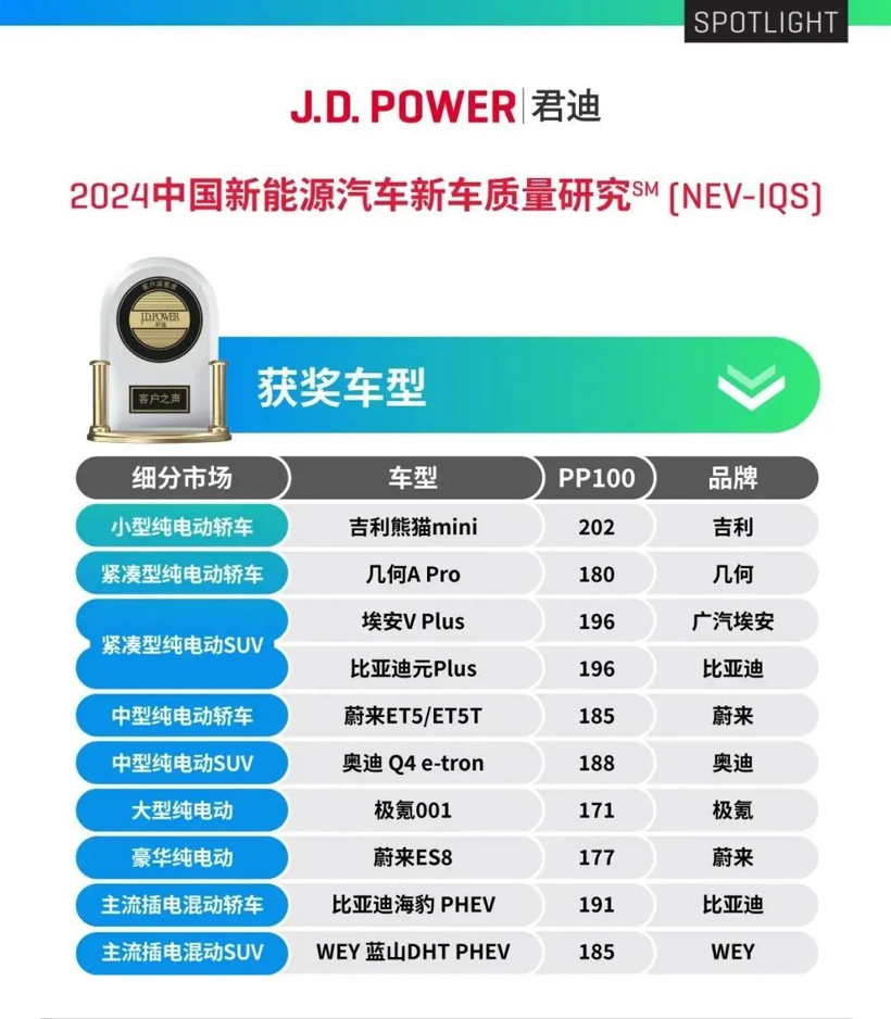 6月,君迪中国发布《2024年中国新能源车新车质量研究(NEV-IQS)》(以下简称新能源车新车质量研究)。该该研究统计和衡量了新能源车新车车主在2至6个月的拥车期内遇到的质量问题。