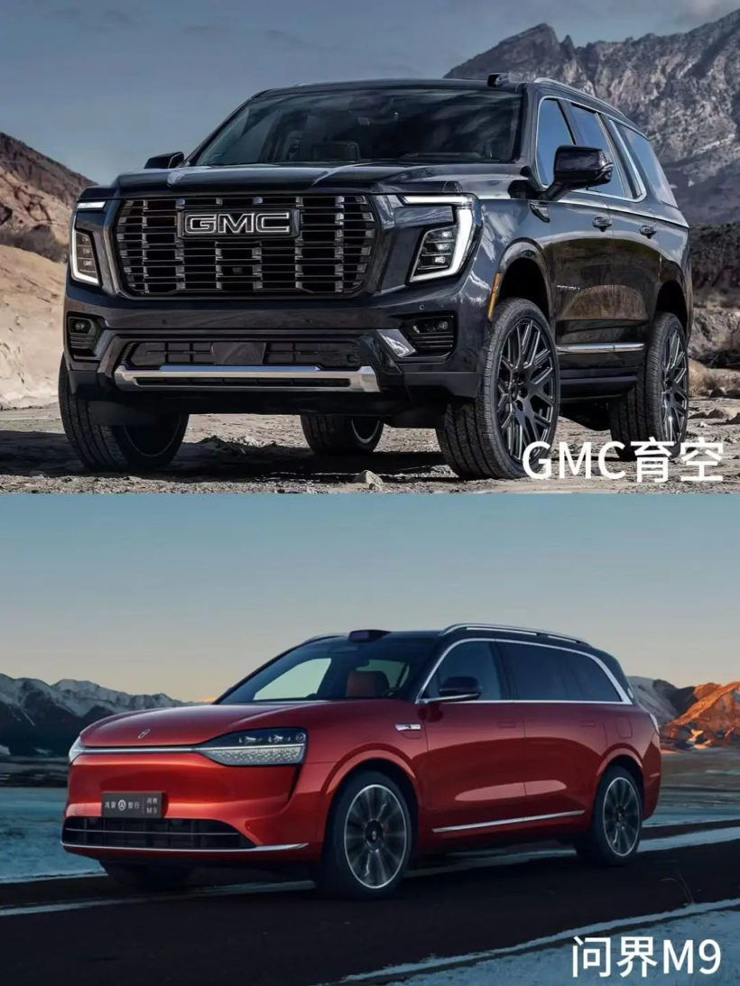 不难看出,GMC育空和问界M9都同属全尺寸SUV,但出身在不同国家的他们动力形式不同,产品定义、设计风格也大相径庭。