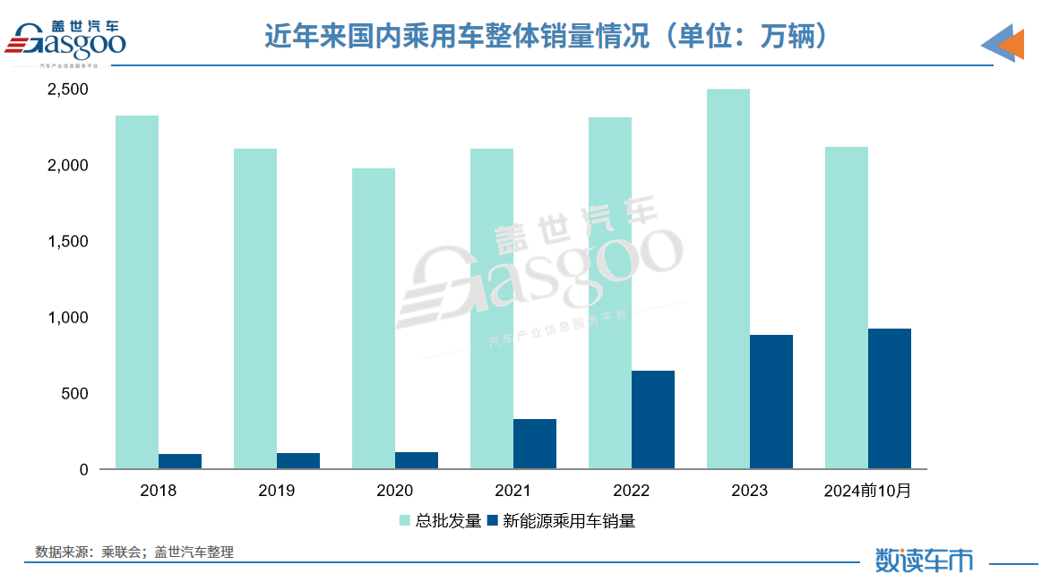 从结果看,基于上述品牌扩张,无论在自主高端突围还是电气化转型方面,过去几年中国汽车产业确实取得了长足发展。特别是新能源汽车,2017年国内整体销量还不足百万,短短几年已经翻了几番。据乘联会最新统计,今年1-10月,国内新能源乘用车累计批发销量已经达927.9万辆,同比增长36.5%。