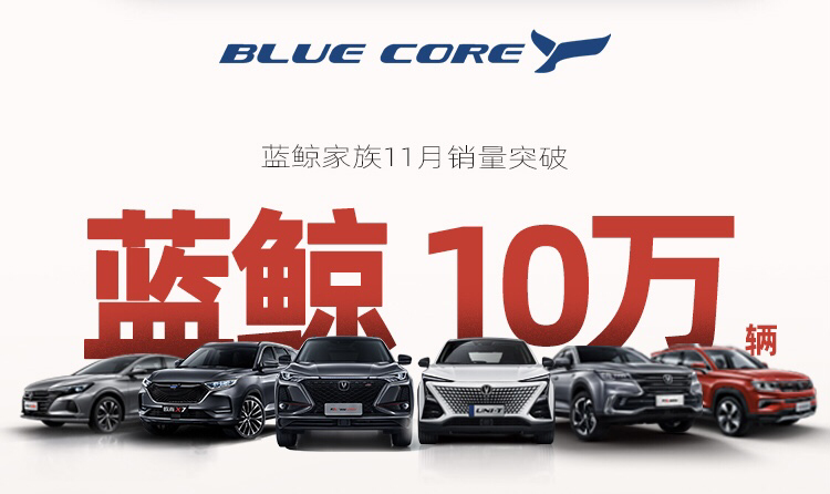 目前,搭载蓝鲸发动机的蓝鲸家族车型成为助推长安汽车销量不断增长的强劲动力。2020年11月蓝鲸家族销量持续突破10万辆,长安汽车整体销量219526辆,同比增长24.5%。在连续经历八个月高速增长后,1—11月,长安汽车累计销量1803047辆,同比增长15.3%。
