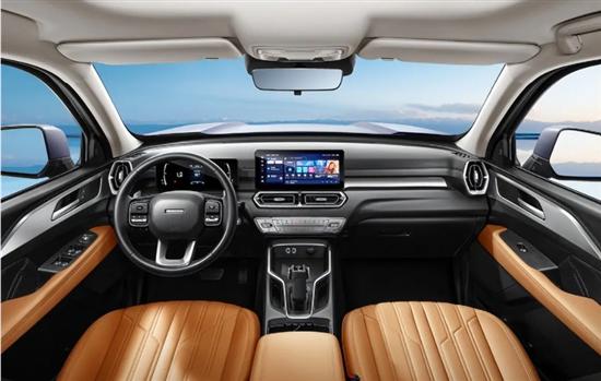 从公布的内饰图片来看,新车中控台将采用“T”字形布局,并通过大量横向线条设计,使得中控台层次感十足。另外,新车将配备全液晶仪表盘和悬浮式中控屏,而方向盘的造型则与哈弗大狗非常相似。